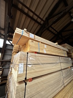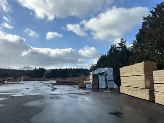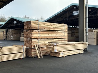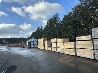機械を使って原木を加工し、顧客の必要なサイズをカットし、整然と縛って製材所に置く。(利用機械將原木才切客戶所需尺寸,整齊綑綁,堆置木材廠內)